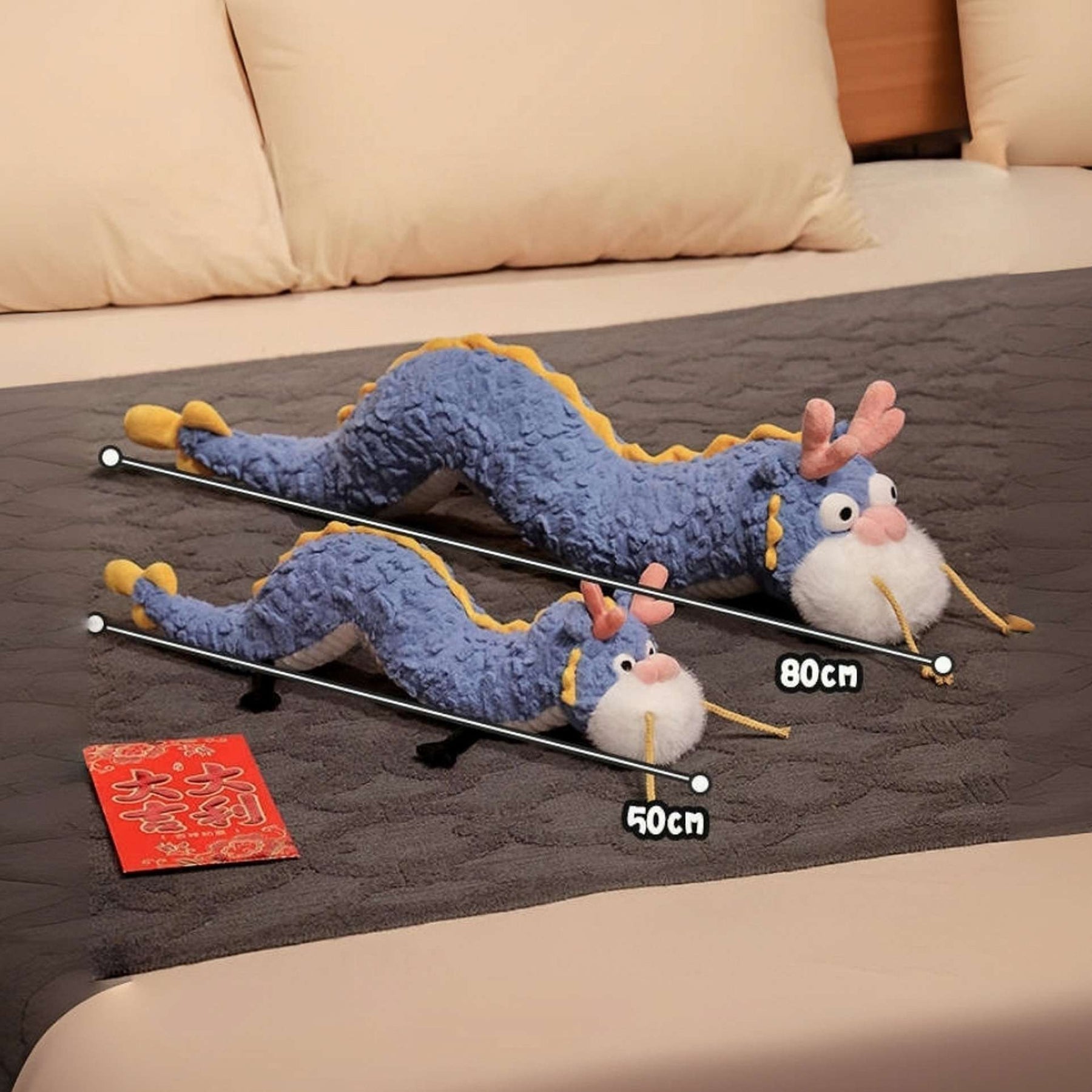 This charming blue Chinese Stuffed Dragon It stands out for its soothing blue hue and unique texture that invites a gentle touch. The softness of this plush toy rivals its durable craftsmanship, and the pink antlers add whimsical charm. The long body, reminiscent of undulating waves, seems to soar through the clouds. The perfect gift for loved ones of all ages, this stuffed dragon is more than just a toy, it is a work of art that brings calm and joy to any space. Its superior design and quality make it a thoughtful gift that transcends the mundane and promises to be a cherished companion.