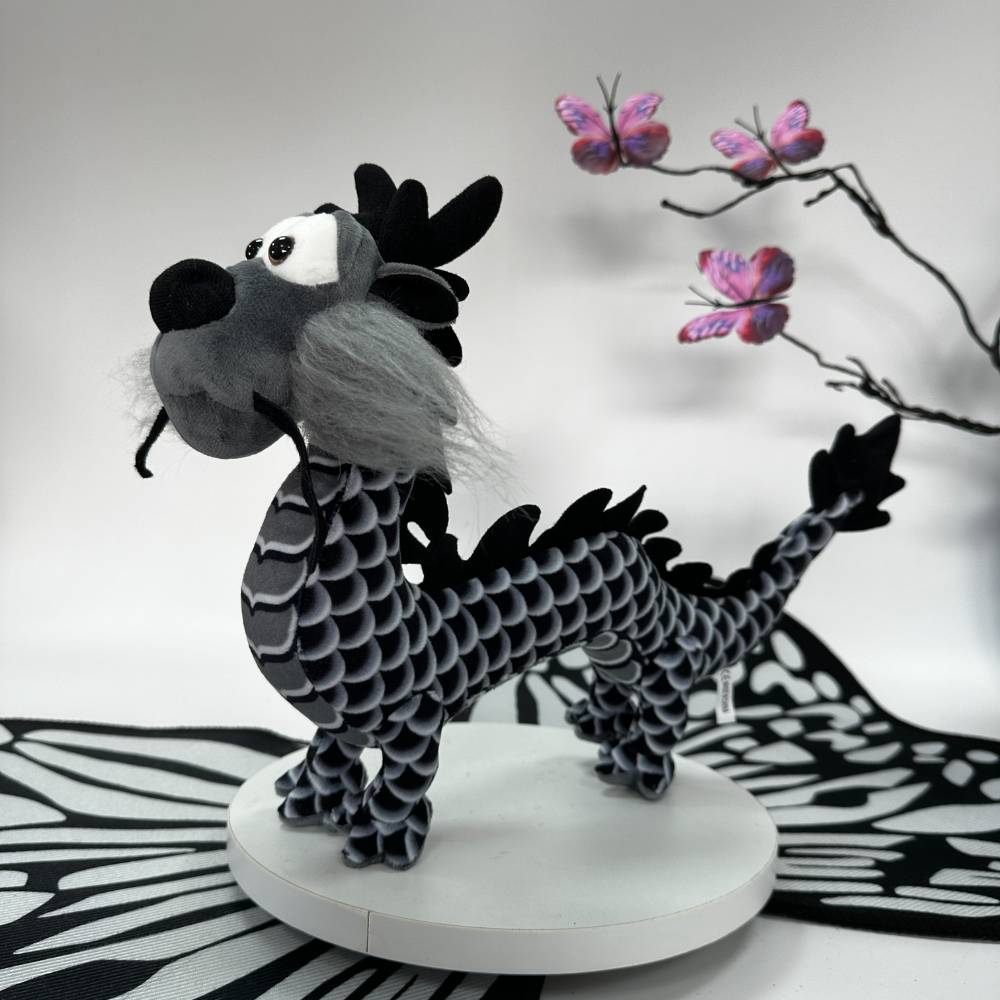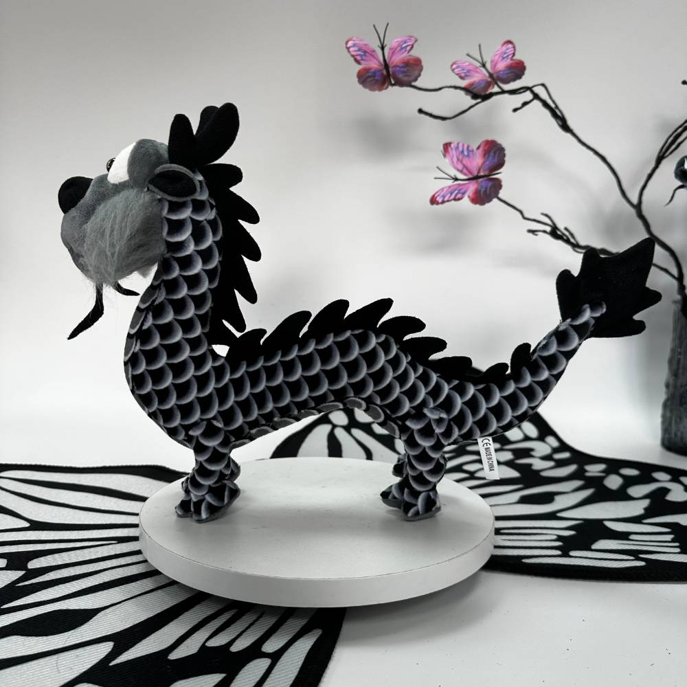 This charming Black Chinese Stuffed Dragon brings a little legend to your everyday life. With its long, soft body covered in black-and-gray scalloped “scales,” it captures the look of a classic Eastern dragon—mystical, elegant, and fun.