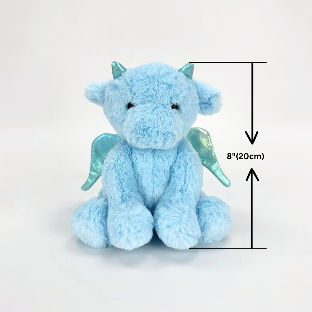Spark your child's imagination with this plush legendary friend, a roaring blue dragon! This cuddly friend is crafted from high-quality materials and features cute details, like soft fur and shining little wings. At 8 inches tall, this dragon is the perfect size for cuddling and playtime. This plush toy is great for fans of dragons and fantasy creatures, and it makes a wonderful gift for birthdays or any other occasion.