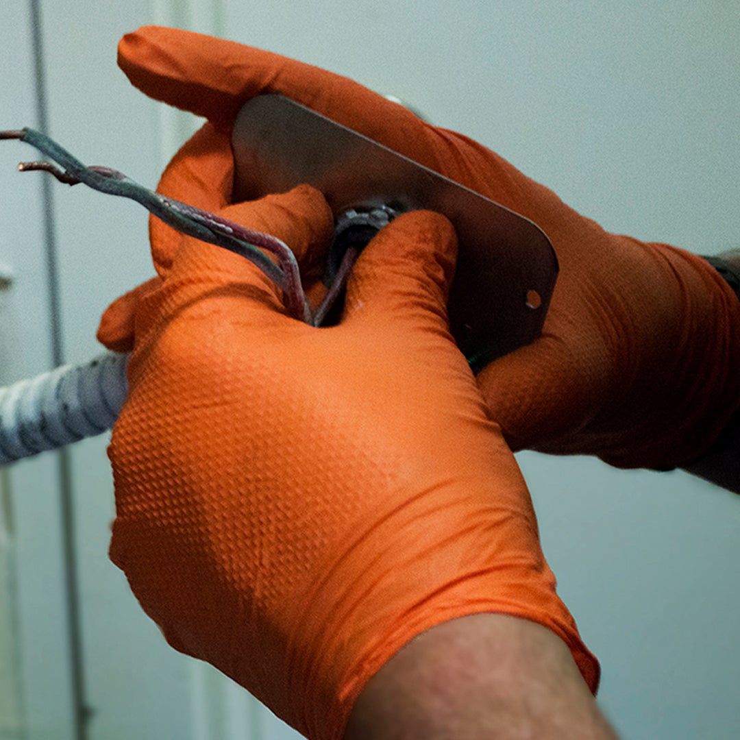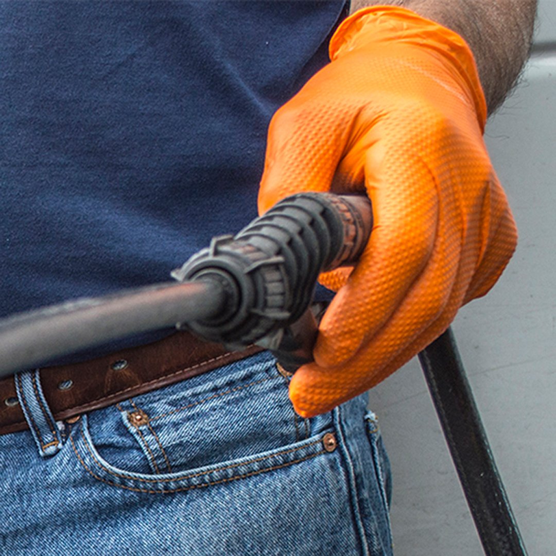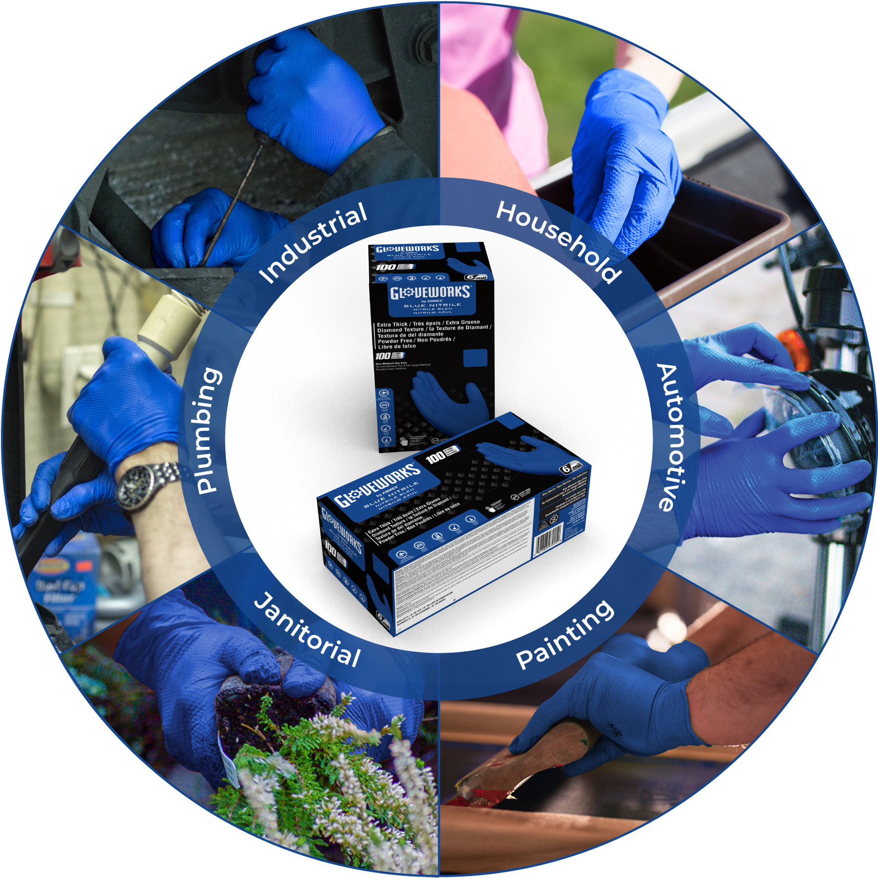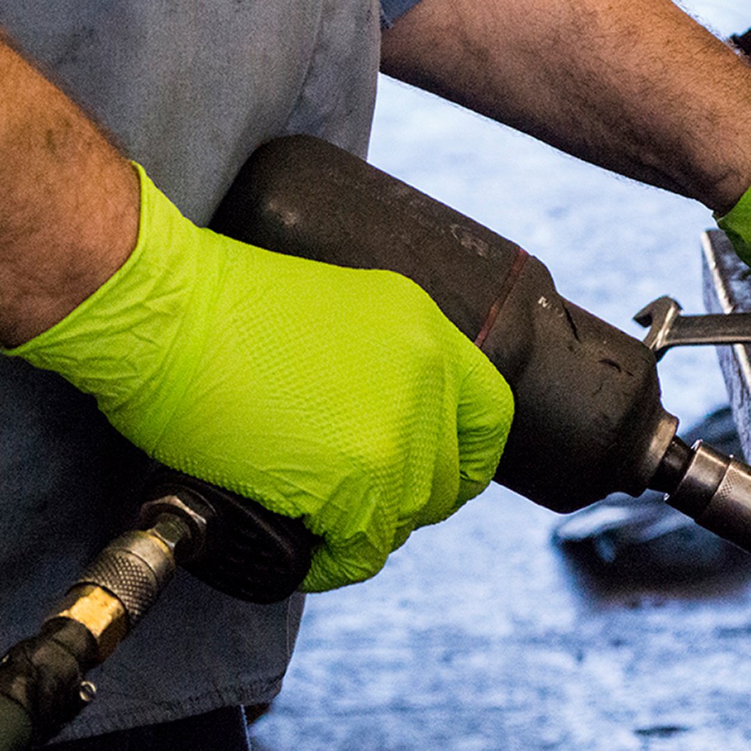 Gloveworks HD Textured Black Nitrile Industrial Gloves deliver strength, dexterity, durability, fit, feel, and comfort. Comprised from thick 6-mil nitrile, they also feature raised diamond texture, with 60 percent more surface area than standard nitrile gloves. The diamonds channel away liquids for first-rate gripping power in wet conditions. Nitrile is durable and more resistant to punctures, tears, and rips. It protects against grease, pesticides, gasoline, and specialty chemicals. They are touchscreen compatible and feature excellent tactile sensitivity making them a great fit for applications from automotive to manufacturing, janitorial to plumbing, paint shop to food service. Food-safe and commonly bought for countless uses around the home. Black color helps conceal grime. Latex-free and powder-free. Buy one size larger than you normally would.